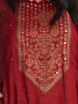 Red Cotton A-line Salwar Kameez