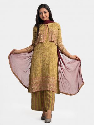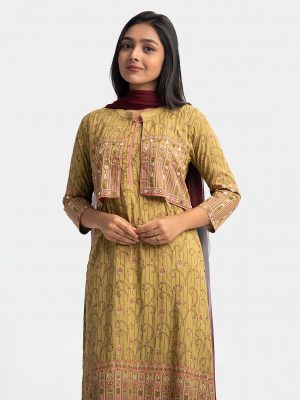 Coffee Viscose A-Line Salwar Kameez